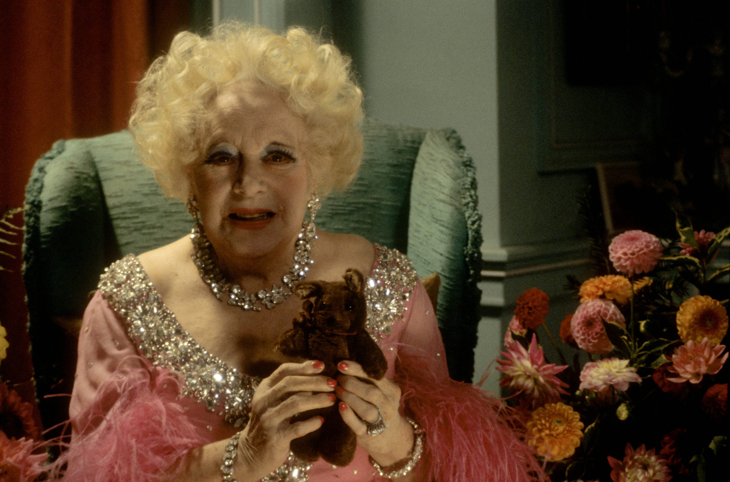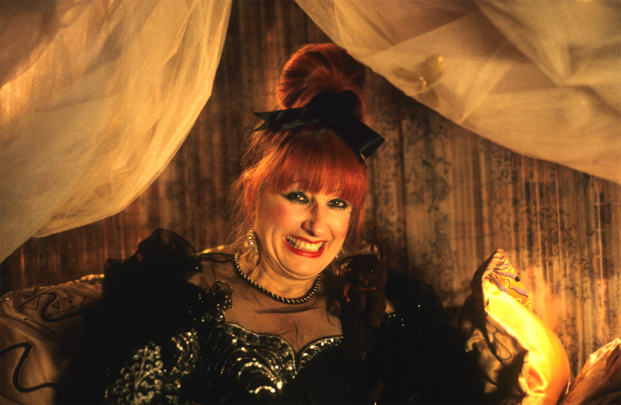 Fashion designer Dame Zandra Rhodes, in her bedroom, or should that be boudoir? Bayswater, London W2